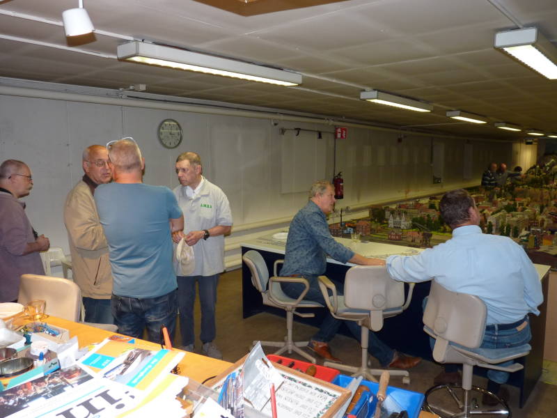 Zaterdag 9 september 2017 was een kleine delegatie van de AMRA, Antwerp Model Railroad Association, bij ons op bezoek. Na een rondvaart door de grachten waren zij in de middag in ons clublokaal. Hier werd de baan van alle kanten gefotografeerd en gefilmd door de mannen en zaten de vrouwen gezellig te kletsen bij de bar. Het bezoek gebeurde met een touringcar van de firma De Polder uit Antwerpen, die gestald stond in de remise, zo iets komt denk ik niet meer voor. Aan het eind van de middag vertrok het gezelschap richting Amsterdam Zuid, waar het diner werd genuttigd. Uit handen van de voorzitter ontvingen wij een enveloppe met inhoud, in verband met het 50 jaar bestaan van de vereniging. Zo kunnen wij terug kijken op een gezellige middag met onze Belgische vrienden.
