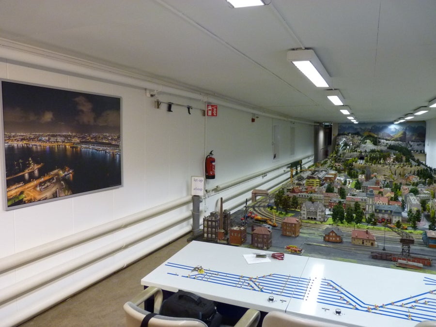 Achter in het lokaal bevond zich een ruimte met twee ongelijke vloeren, een ruimte waar alleen maar spullen werden neergezet en er nutteloos bij lag. Eind november 2015 kregen wij te horen dat deze ruimte werd voorzien van een vloer, de oppervlakte is dusdanig groot dat daar de modulebaan kan worden uitgezet. Voor het zover was moest er eerst flink worden opgeruimd en enkele wanden worden verwijderd. Door de firma Dekker uit Bergen (NH) werd tenslotte een vloer gemaakt. De volgende beelden spreken voor zich.