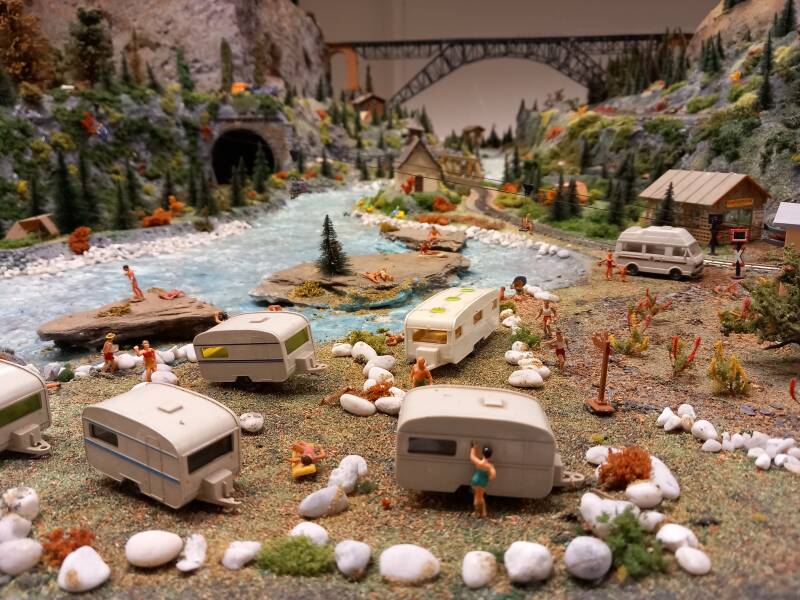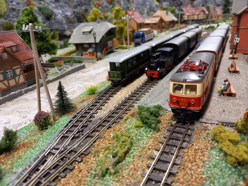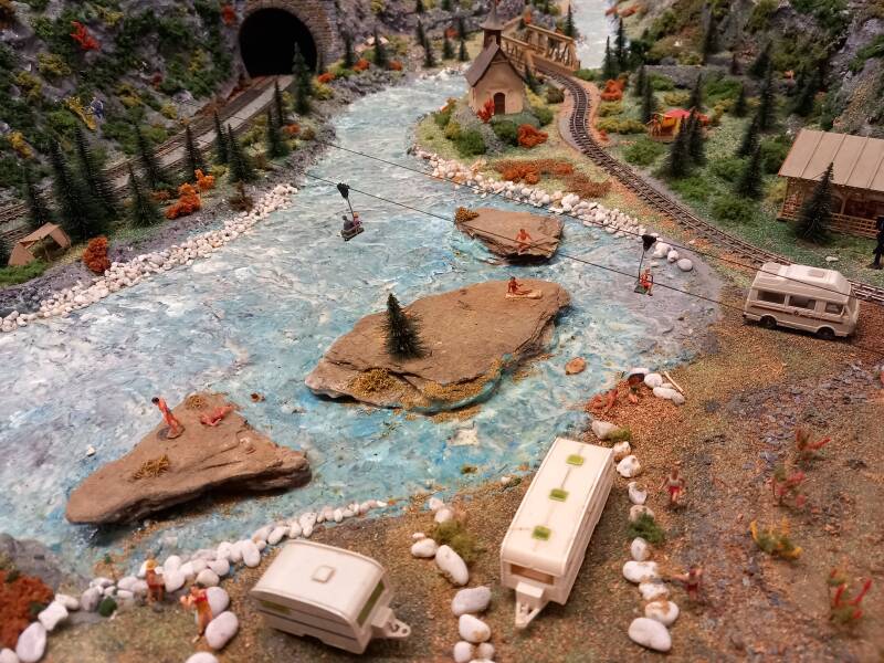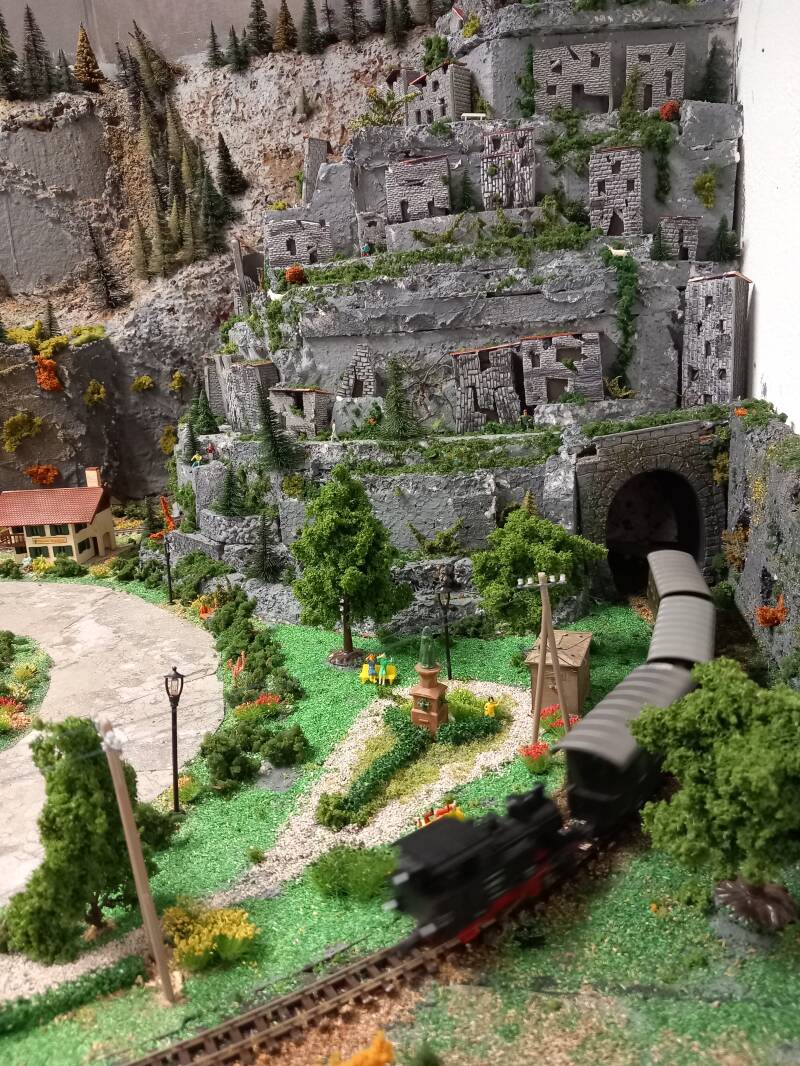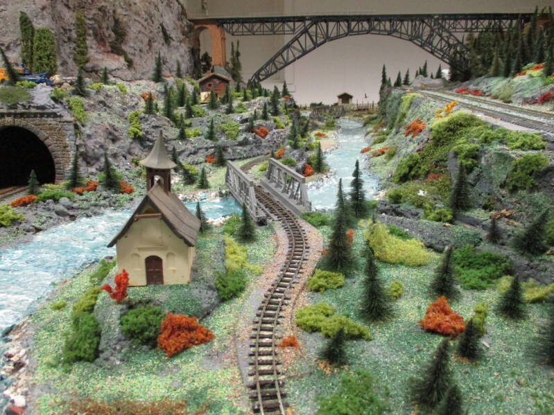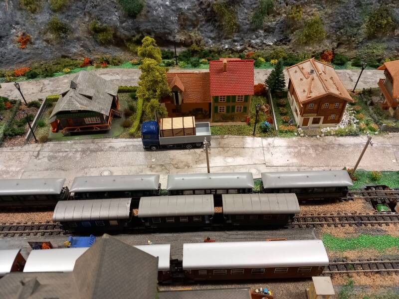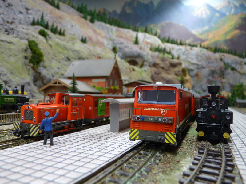 Door het berggedeelte van de grote baan slingert ook een smalspoorlijn, waar wordt gereden op 9 mm (HOe). Hier wordt gereden met materieel van Roco en Liliput. Het smalspoor wordt analoog aangestuurd.
